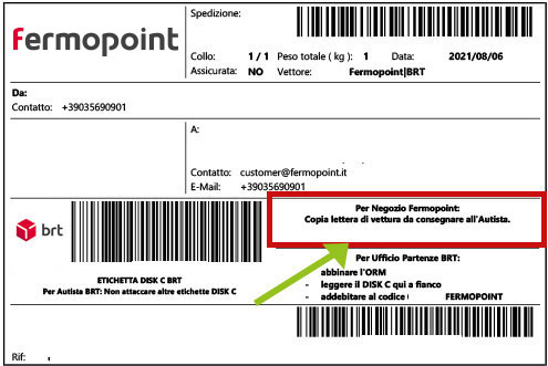 La prenotazione è valida per UNA SOLA SPEDIZIONE. Tutti i pacchi dovranno essere consegnati contemporaneamente e adeguatamente etichettati. Si ricorda che i fermopoint NON ACCETTANO: